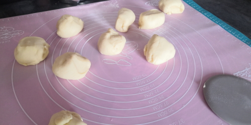 - Former un gros boudin et à l’aide de la corne de pâtissier, couper la pâte en 9 parts de même grosseur (55 gr environ)