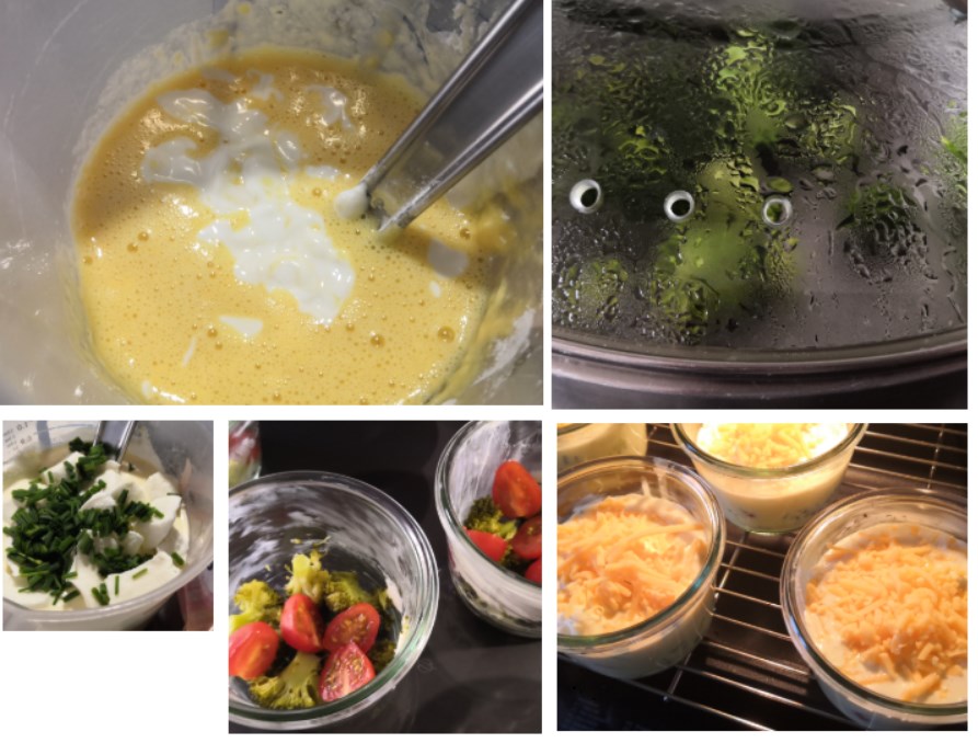 Ce jour là j’ai craqué ! Comme je n’avais pas fait d’oeufs de la semaine, j’ai choisi de faire les clafoutis que j’avais vu chez mon amie Yolande (les petits plats de Patchouka) qu’elle avait réalisé aux brocolis. Ces clafoutis ne me semblait pas très très riches, même si Yolande préconisait de mettre 2 boules de mozzarella. J’ai voulu rester fidèle à sa recette alors c’est ce que j’ai fait mais je pense qu’une boule serait suffisante, d’autant plus qu’elle ajoutait du gruyère râpé. N’en ayant pas j’ai opté pour le cheddar râpé