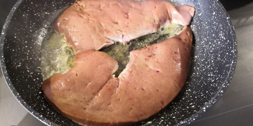2- Je ne mets pas le temps de cuisson du foie de veau car je l’aime très saignant, là aussi faites le cuire comme vous aimez