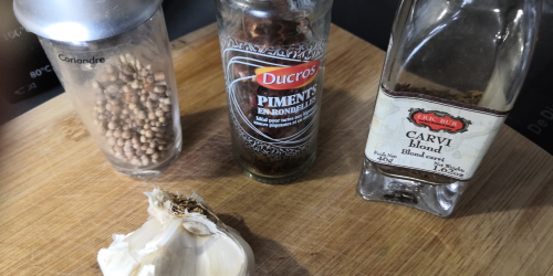 4 gousses d’ail1 piment oiseau ou 2 (pour moi 6 rondelles de piment séché DUCROS)