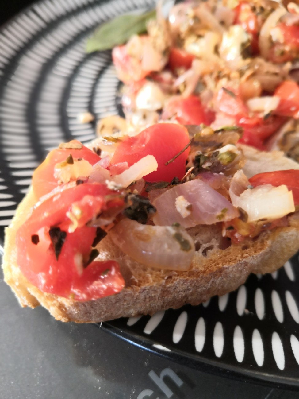 Toute contente d’avoir trouvé cette solution, j’ai donc fait griller des petites rondelles de pain taillées dans une baguette et j’ai étalé dessus cette petite , et voilà comment est née ma petite tartinade à la grecque !