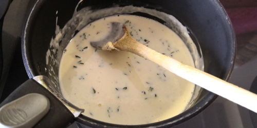 1- Laisser infuser le thym dans la sauce permet de lui donner beaucoup de goût. Vérifier toutefois sa cuisson. Le feu doit être au minium. Remuer de temps en temps. Si elle venait à trop épaissir. Ajouter un petit filet d’eau