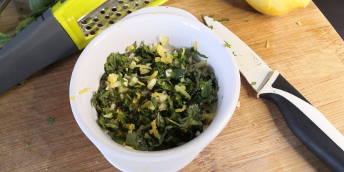 - Sortir la gremolata du frigo et ajouter celle ci sur les souris et sur la navets