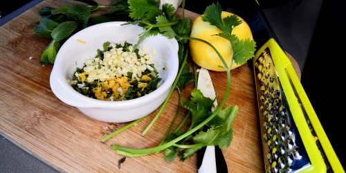 - Décorer avec un peu de coriandre fraîche et servir avec le reste de la gremolata pour ceux qui le souhaitent