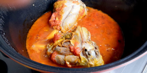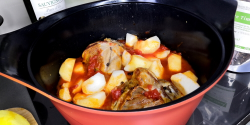 - Couvrir la cocotte et laisser cuire, à petits frémissements, pendant une heure 30. (retourner les souris régulièrement au cours de la cuisson en laissant l’eau du couvercle arroser le plat)