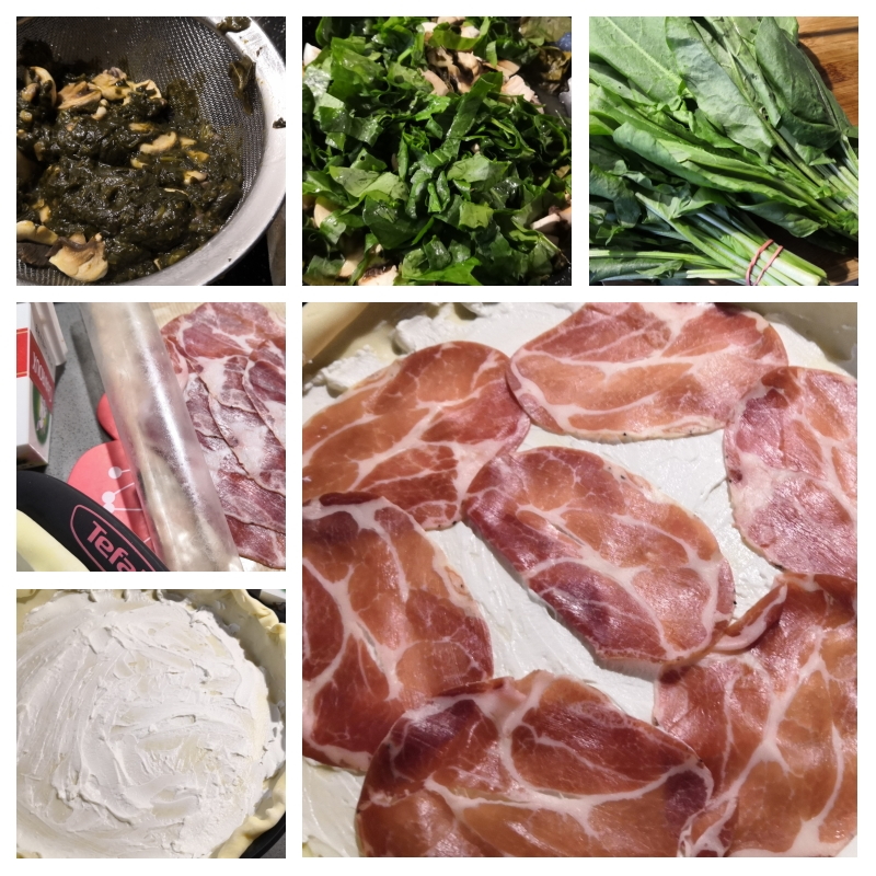 Quiche à l’oseille champignons coppa chèvre et parmesan