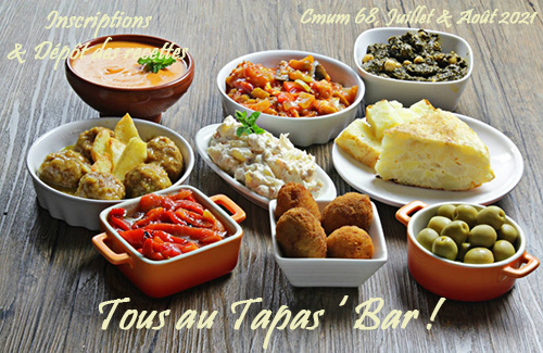 Bonjour à tous ! Lorsque mon fils et ma belle fille sont venus pour passer quelques jours avec nous je ne savais pas vers quelle heure ils arriveraient le soir. Du coup je me demandais bien ce que j’allais prévoir à manger. Le thème « Tous aux Tapas bar » du CMUM de ce mois de juillet m’a soufflé une idée. Et si je faisais un repas/apéro tapas ? Je pouvais tout préparer à l’avance et ça ferait apéro et repas comme cela s’ils arrivaient tard ce n’était pas grave.