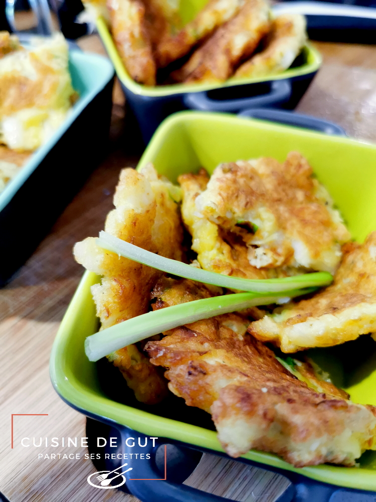 Ohhhh les belles galettes goûteuses . Merci ma Gut pour ce doux souvenir de ma maman, elle nommait tes galettes « beignets de morue » même recette sauf qu’elle n’ajoutait pas de lait et mettait du blanc d’oeuf sans jaune et les cuisait à sec dans une poêle, un moment que je n’en ai mangé, ça fait loin, gros bisous !!