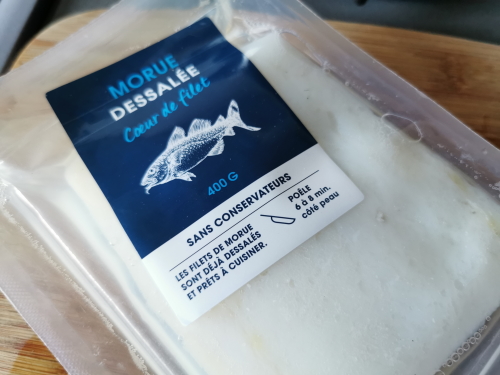 J’ai trouvé ce beau pavé de morue dessalée à GF mais j’arrivais à en trouver à Leclerc au rayon frais mais les morceaux étaient moins beaux. Les poissonniers effectivement n’en font pas. C’est bien pratique lorsque l’on aime ce poisson. J’espère que tu en trouveras.