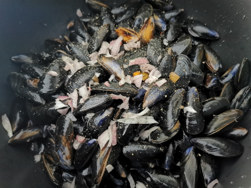 - Cuire à feu vif jusqu’à ce que toutes les moules soient bien ouvertes.