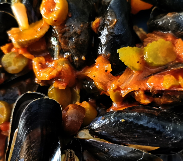 Eh bien ça le fait bien ! les moules avec cette sauce charcutière c’est aussi bon que les côtes de porc. Je les referais de temps en temps. Décidemment quand on ose on fait de belles découvertes !