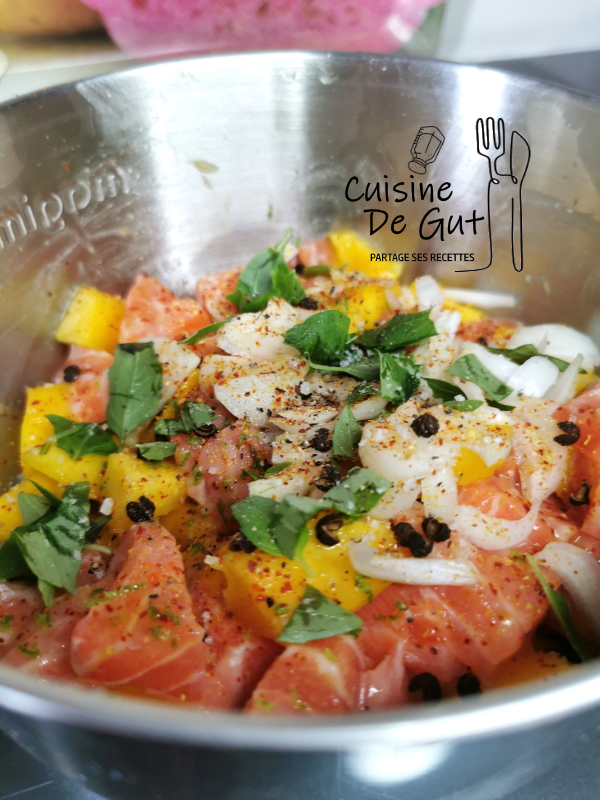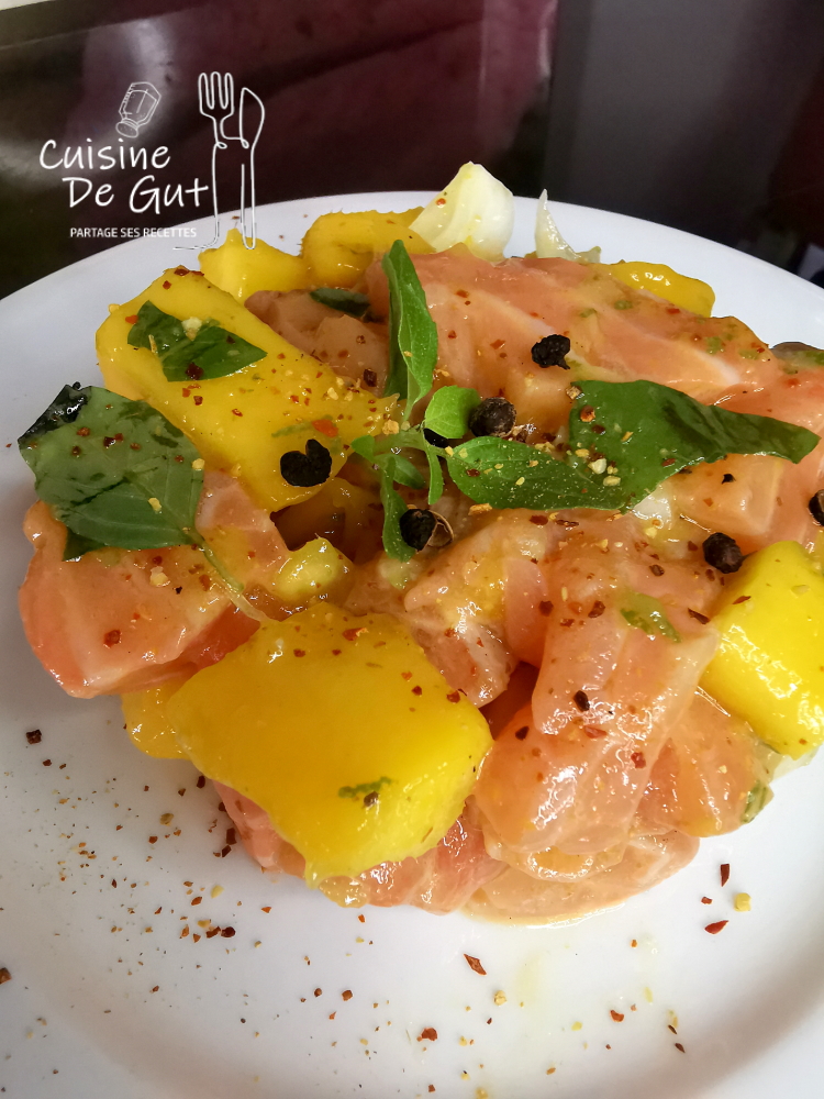 Tartare de saumon et mangue au basilic et poivre Timut du Népal