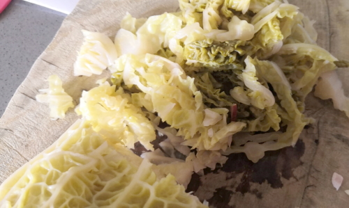 • Bien cuit le chou frisé est plus souple que le chou blanc ce qui fait qu’avec cette purée il s’incorpore bien je trouve. Ou Jackie est une sacrée cuisinière mais moi qui cherche facilité et rapidité maintenant ce n’est plus souvent pour moi. Je me contente de saliver devant ses plats.