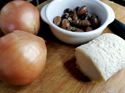 oignons et fromage de chèvre.. tout ce qu’il aime !!!