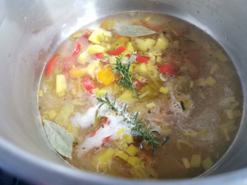 Un reste de potage de légumes NON MIXÉ parfumé à l’origan et au curcuma