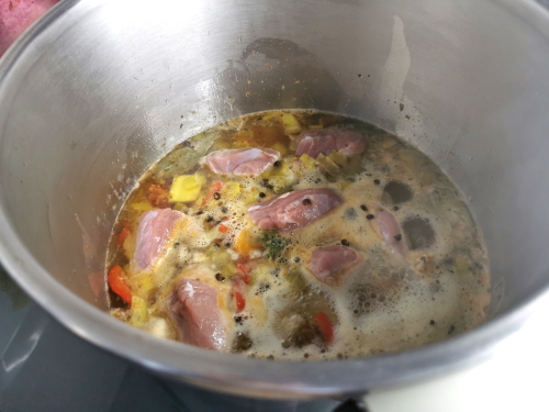 2- Si les légumes sont déjà très cuits, je vous conseille de faire cuire la viande déjà seule avec de l’eau et du vin blanc et d’ajouter le potage seulement après pour ne pas qu’ils se retrouvent en bouillie !