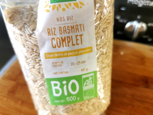 Ceci dit si j’en avais fait de trop il ne m’en restait pas suffisamment pour refaire une soirée potage pour 2 personnes car il était tellement bon que nous nous étions largement servis. Du coup comme je l’avais trouvé très parfumé et comme je voulais faire une blanquette de veau le lendemain, j’ai fait cuire mes morceaux de viande avec ce reste de potage et un ajout de vin blanc, de champignons, de poivre Timut du Népal et de sarriette. Et comme je viens de découvrir la saveur du riz Basmati complet je l’ai présenté avec.