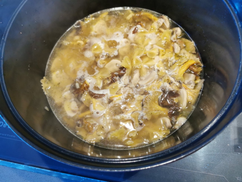 • Si vous choisissez l’option des pâtes, les ajouter aux champignons après le temps de cuisson impartis de ceux ci et laisser cuire jusqu’à ce qu’elles soient cuites