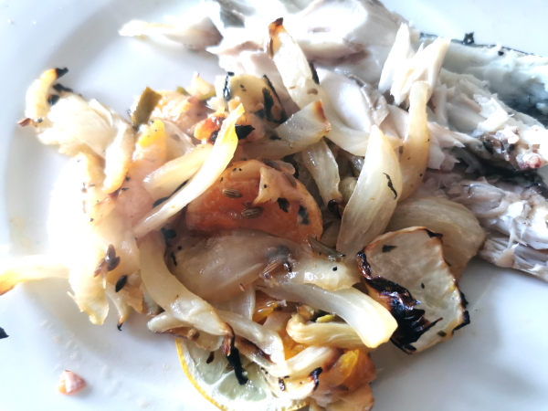Je n’ai pas aimé non, j’ai carrément adoré ce plat ! ce côté acide mélangé à la saveur de l’anis hummm !!! c’est vraiment délicieux. Je ne tarderais pas à refaire ce plat je l’ai trop aimé. En fait il ne demande pas beaucoup de contrainte pour le cuisiner, et en plus c’est un plat que j’ai parfaitement digéré. Pas de reflux après le repas, ça c’est chouette. Vraiment très bonne idée ce citron/fenouil !