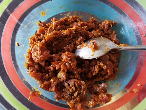 1- Vous pouvez, si vous préférez, ajouter un jaune d’oeuf à la viande hachée, mais à ce moment là ne pas mettre de sauce tomate. Moi j’en ajoute pour bien lier la viande et je ne mets pas de jaune d’oeuf.
