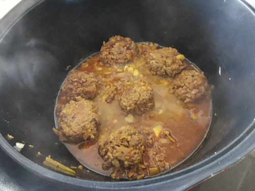 - Lorsque les boulettes sont dorées, ajouter un verre de vin blanc et poursuivre la cuisson pendant une quinzaine de minutes à feu doux