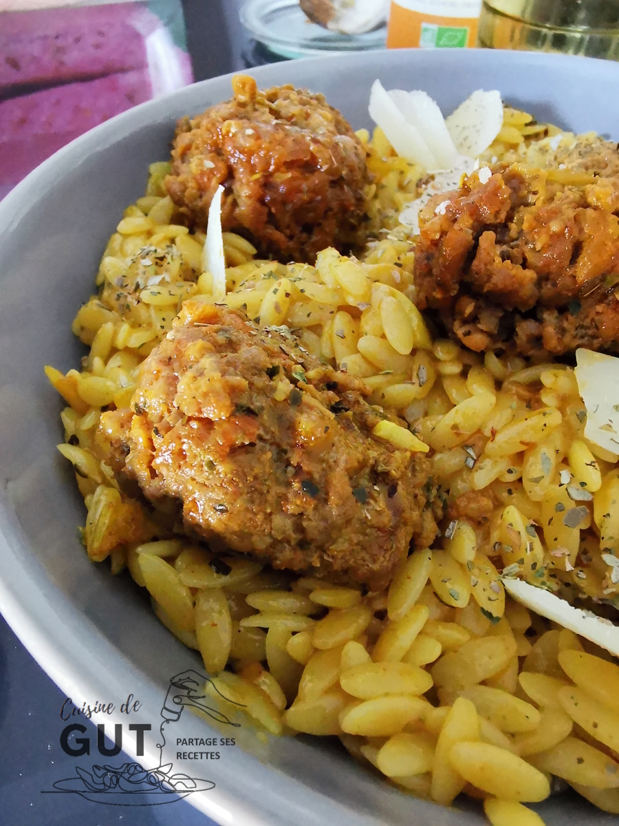 roooh tes petites boulettes très parfumées me font envie! j’adore ces petites pâtes mais mon homme ne peut pas les voir en peinture! il en a trop mangé petit!! hihi! bises ma gut!