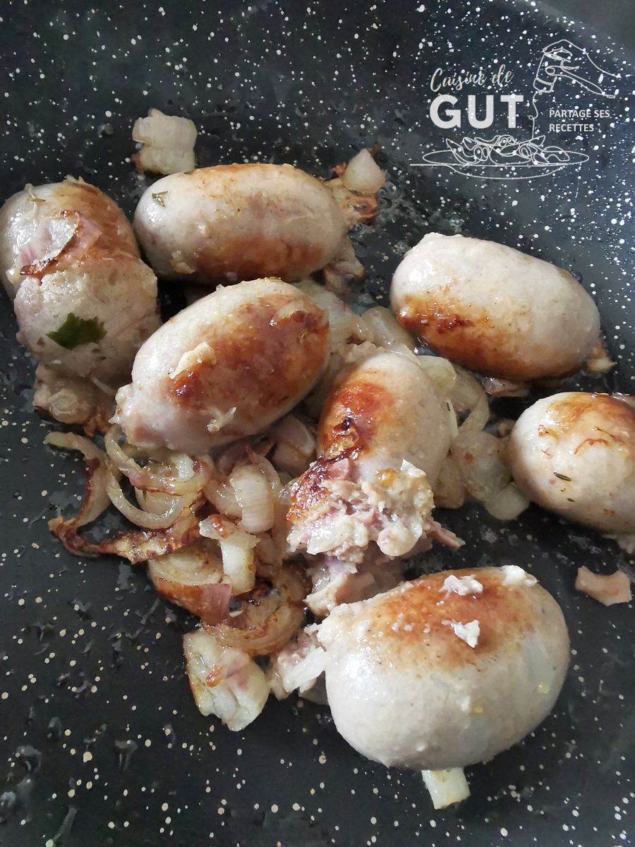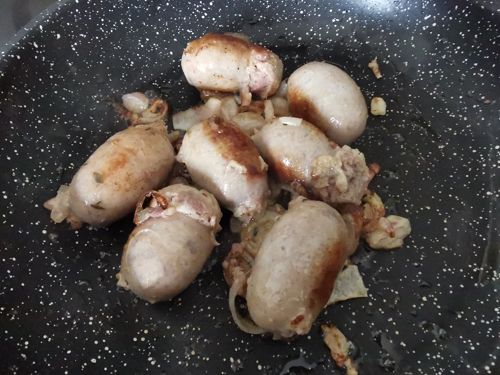 2- Remuez de temps en temps les andouillettes, elles doivent être bien dorées avant de les servir
