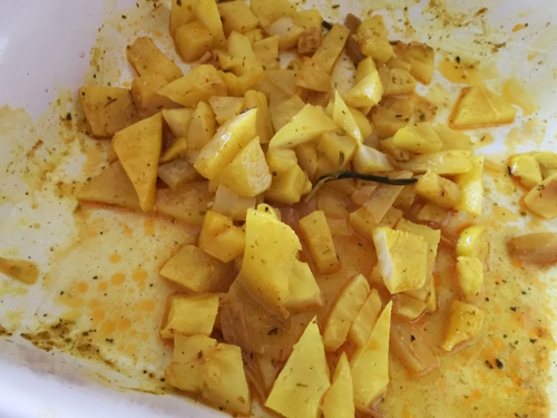 180 gr de céleri déjà cuit et parfumé (vin blanc, curcuma, quelques feuilles de romain, et 2 rondelles de chorizo)