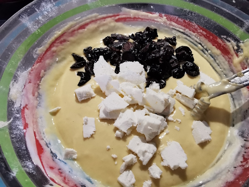 • Ajouter ensuite les olives et la feta dans la pâte et mélanger.