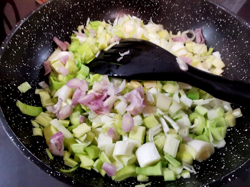 - Une fois bien lavés, couper les poireaux en rondelles assez petites et les mettre dans un plat