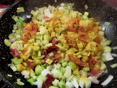 2- Si vous ne trouvez pas de coppa qui a du goût (celle de super marché n’en a pas je trouve) prenez plutôt du chorizo ou du Bacon.