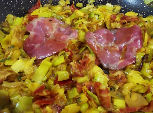 Poireaux Coppa au curcuma comme une Chakchouka
