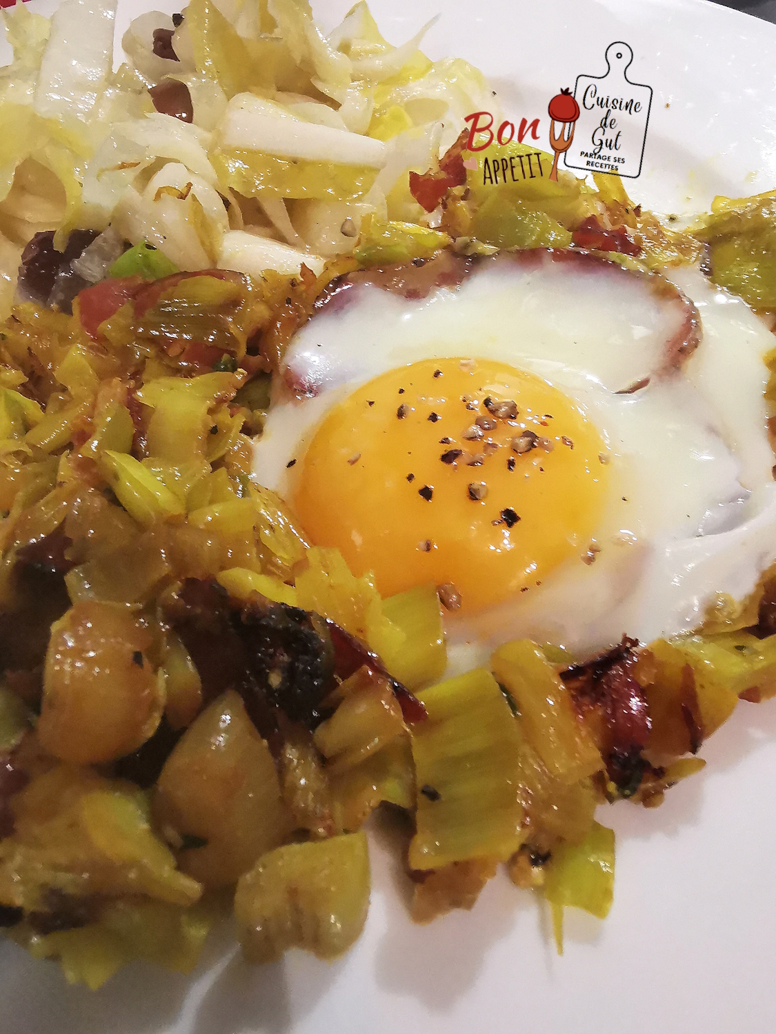 - Servir une portion de poireaux avec une tranche de Coppa avec son oeuf dans chaque assiette.
