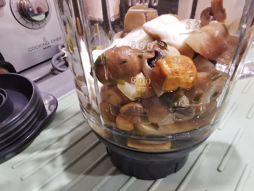 1-ATTENTION : Ne pas mettre de liquide lorsque vous mixez les champignons. Si vous voulez en ajouter faites le que progressivement, sinon vous obtiendrez un velouté !