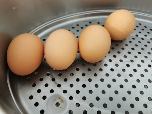 - Commencer par faire cuire 4 oeuf durs, soit à la vapeur soit à l’eau bouillante durant 12 minutes