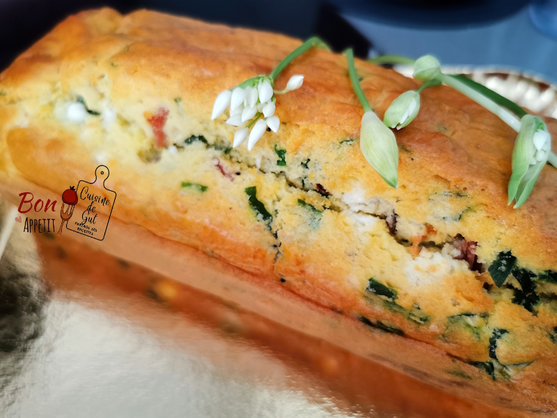 J’avais justement tout ce qu’il fallait puisque comme je vous l’ai dit, ma soeur a eu la gentillesse de m’envoyer, par la poste, cette herbe précieuse que je ne trouve pas par chez moi, je veux parler de l’ail des ours. J’avais de la Coppa et de la feta, vu que j’achète à GF régulièrement cette Coppa Corse ainsi que cette feta parfumée à la truffe. J’avais suffisamment d’oeufs, alors j’ai immédiatement filé en cuisine pour réaliser ce cake. Il n’était pas question que j’en reporte sa réalisation de peur de l’oublier une fois de plus ! Vous l’avez compris j’ai un peu reporté sa publication. Le poisson du CMUM oblige !