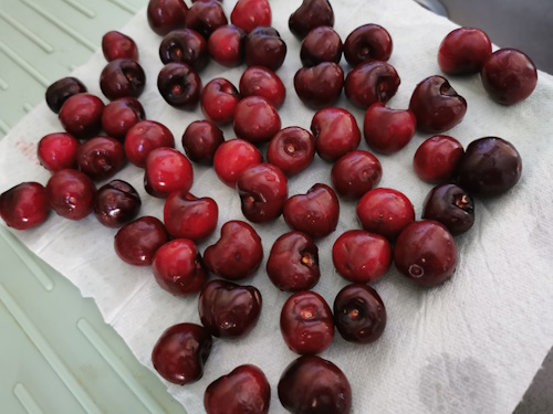 - Laver et équeuter les cerises, bien les essuyer. Réserver