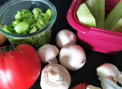 - Faire cuire les fèves avec un tout petit filet d’eau durant une minute au micro-ondes