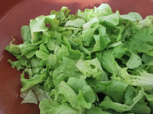 - Verser un peu de vinaigrette au fond d’un saladier et ajouter quelques feuilles de chêne