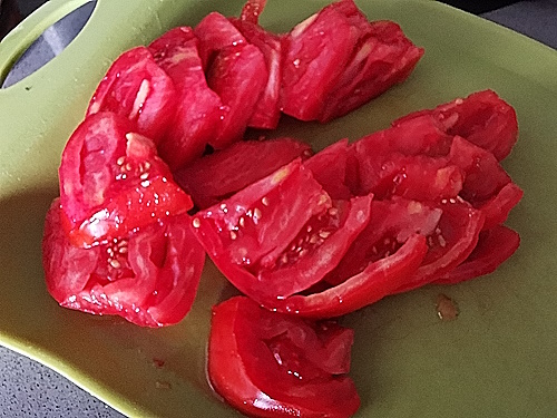 - Laver la tomate Marmande, retirer le trognon et la couper en tranches