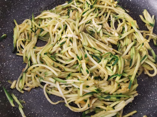 - Laver les courgettes et retirer les extrémités. Les tailler en spaguetti ou en julienne.
