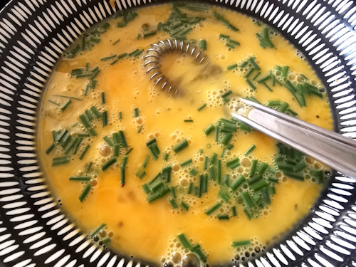 - Saler et poivrer et ajouter généreusement de la ciboulette. Fouetter à nouveau