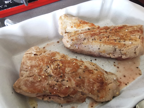 2- Il m’est très difficile de vous donner des temps de cuisson exacts car je n’aime pas cette viande très cuite alors les temps de cuisson pourraient très bien ne pas vous convenir. Ajustez là en fonction de vos goûts !