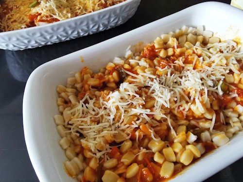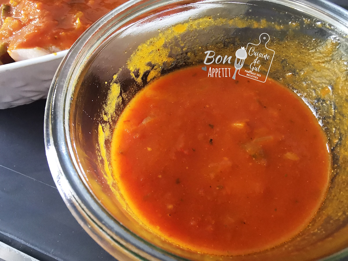 - Les mettre dans un plat et ajouter le reste de la sauce tomate dessus.