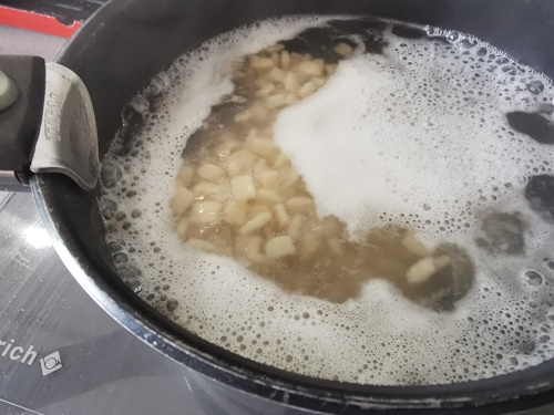 - Ajouter le vin blanc et le vinaigre du pot de cornichons.