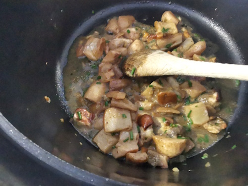- Ajouter alors dans la cocotte les morceaux de cèpes