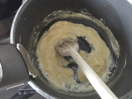 • Mettre le beurre à fondre dans une casserole et faire un roux en ajoutant la farine et en diluant le tout progressivement avec le lait.