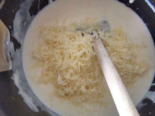 • Ajouter le râpé. Bien mélanger et poursuivre la cuisson en remuant de temps en temps pour que le fromage puisse fondre.
