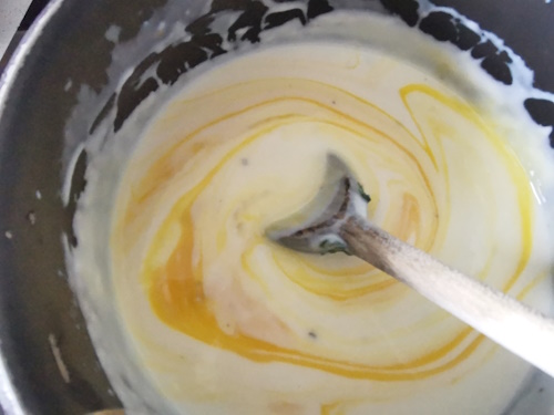 • Lorsque la sauce a atteint cette température ajouter à la sauce un jaune d’oeuf.
