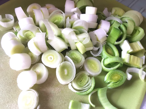 - Commencer par éplucher les poireaux, en retirant les grosses feuilles vertes, puis les couper en deux.